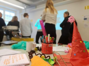 I introkursen har traineerna fått utgå ifrån olika frågeställningar från verksamheterna. I en iterativ process har de gått igenom de olika faserna av design thinking, och skapat snabba prototyper av sina lösningar. De enkla materialen och kreativa metoderna kan ibland göra det svårt för förvaltningarna att se potentialen i design thinking tror Sara.