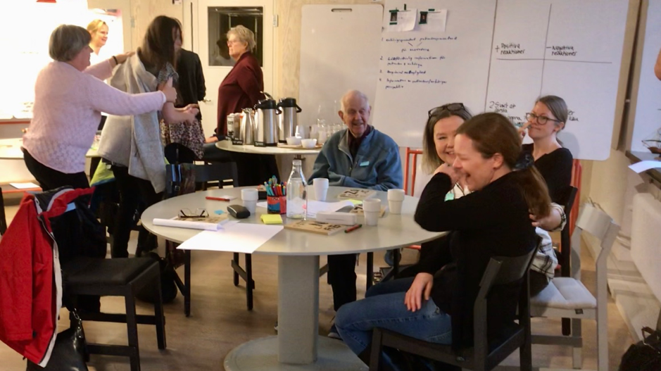 Att arbeta användarcentrerat innebar att även att processen behövde anpassas för att passa gruppens olika deltagare. Maria som ledde workshopserien kommenterade detta: ”Många saker som ofta ingår i en workshop – snabba presentationer, tidsbegränsningar, och vissa engelska utryck, passar inte för alla. Även sättet att leda designprocessen behöver vara människo-centrerat”. Därför lade projektgruppen stor vikt på att varje deltagare skulle känna sig trygg i sitt deltagande och känna ägarskap över processen. Tillitsbyggande, tid för berättelser och individinriktat stöd blev viktiga genomgående inslag.