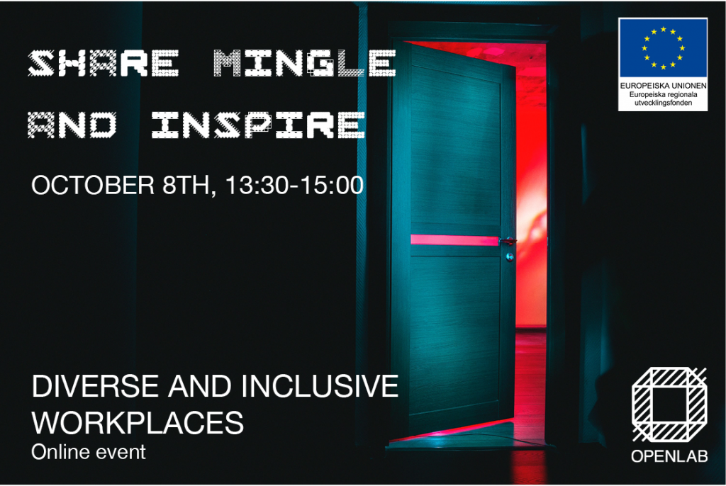 Den 8 oktober arrangerar Openlab evenemanget ’Diverse and inclusive workplaces – Share mingle and inspire’ där fem talare delar med sig av erfarenheter av att öka mångfald och inkludering på arbetsmarknaden och på arbetsplatser. Välkommen!