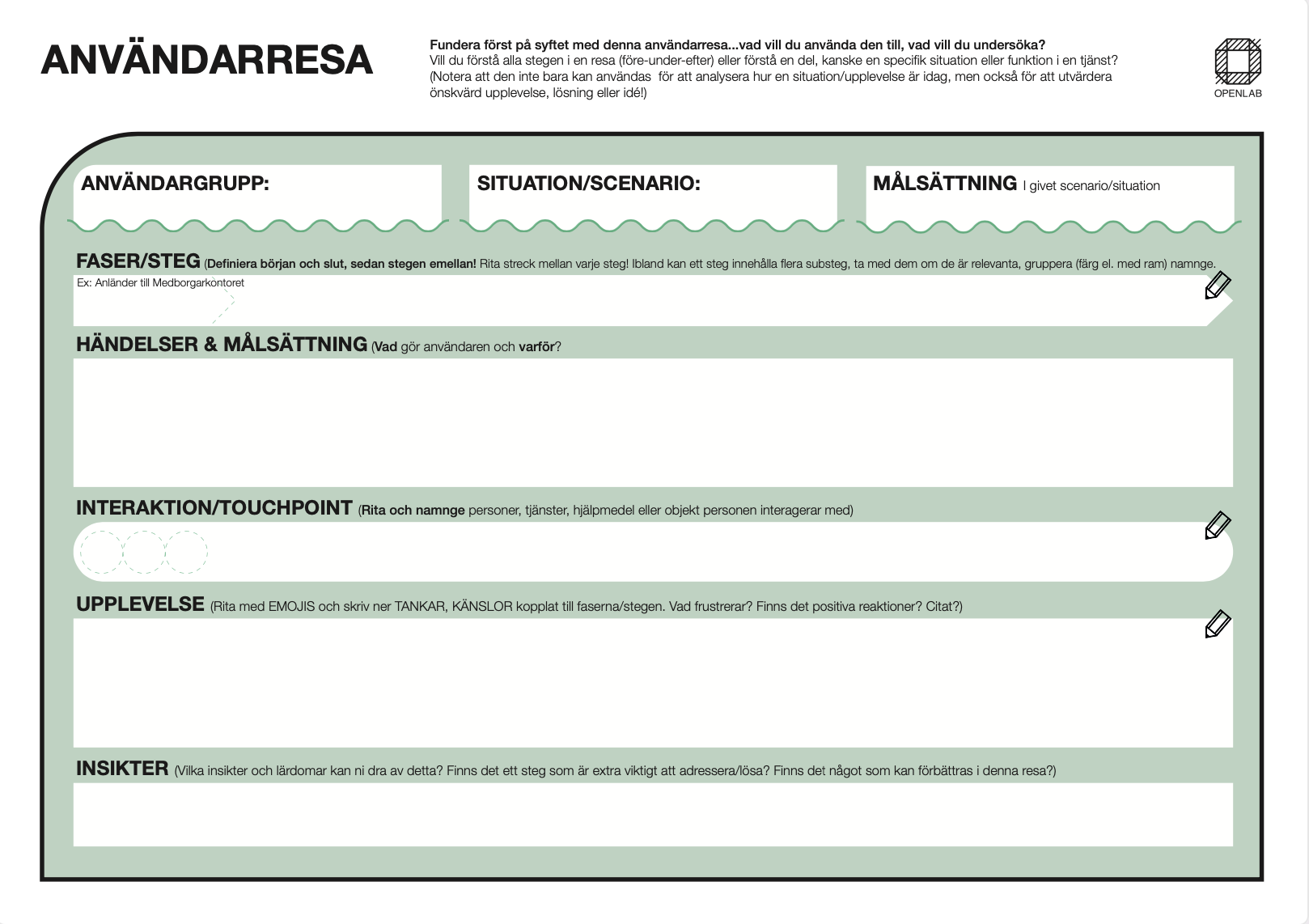 - Ladda ner/skriv ut mallen ”Användarresa”.