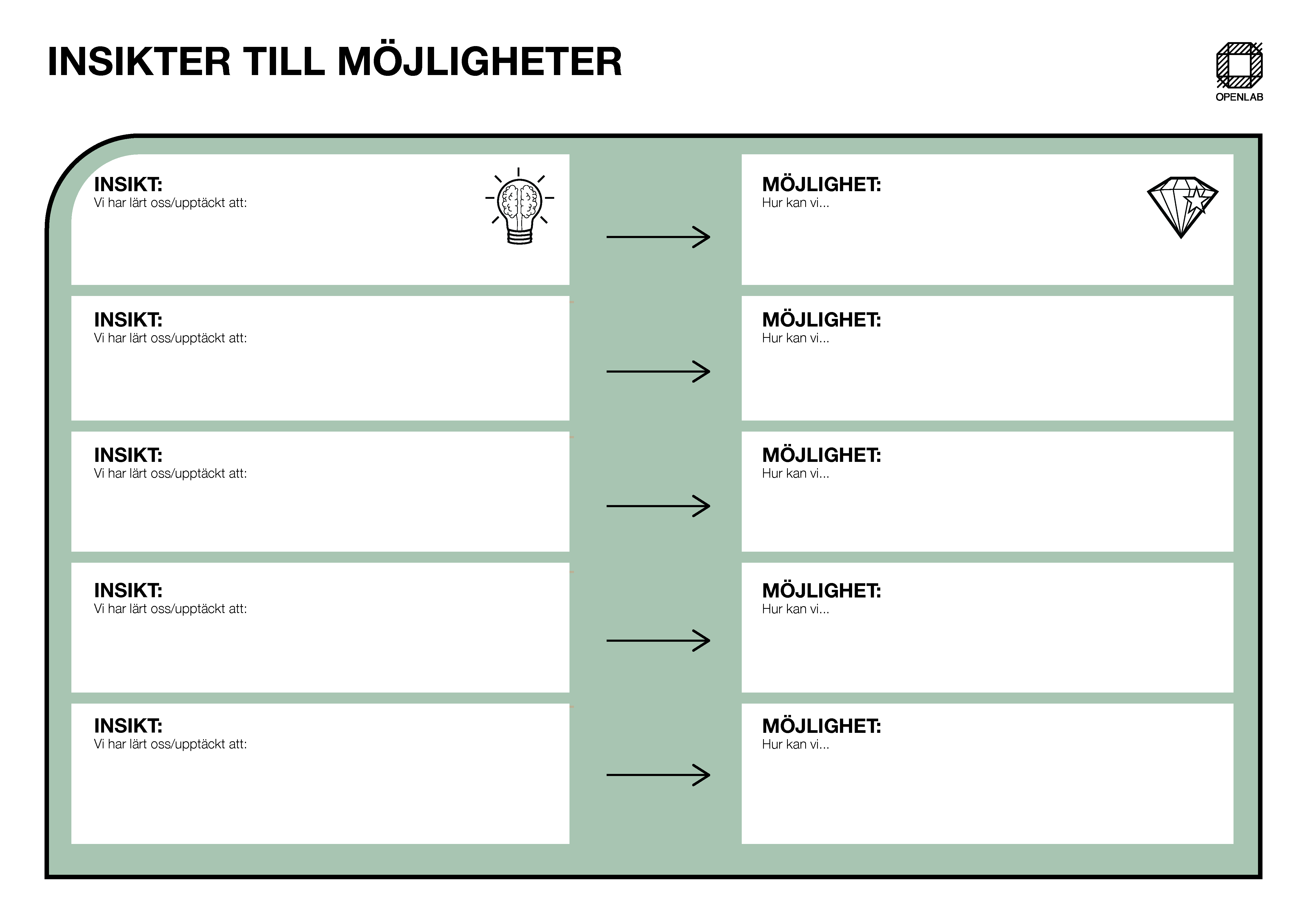 - Utifrån insikterna – identifiera nya möjlighetsområden till höger.